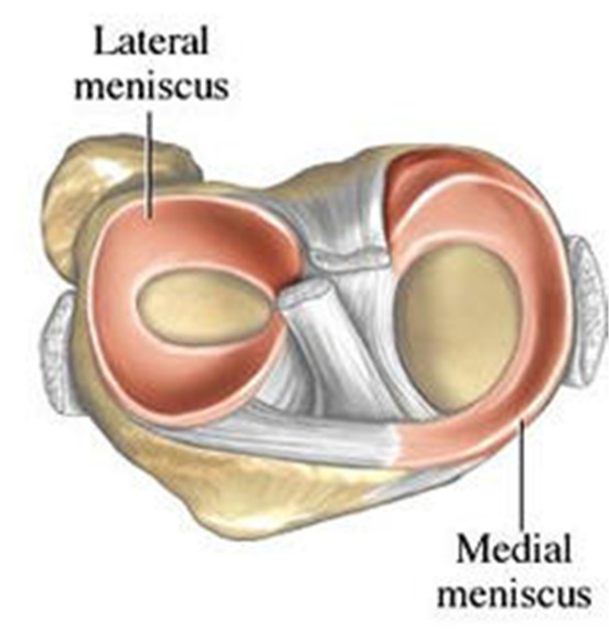 The meniscus is a C-shaped piece of cartilage inside your knee joint.